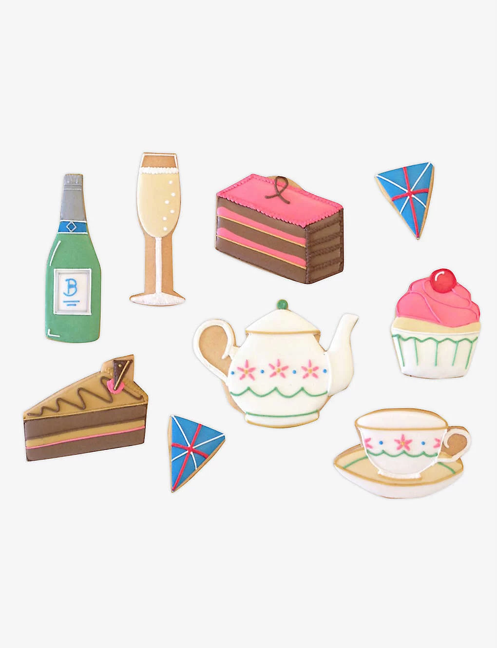 Biscuit: flour ( wheat flour, calcium carbonate, iron, niacinand thiamin), caster sugar, butter ( milk , salt), golden syrup, egg , baking powder (acid calcium phosphate, sodiumhydrogen carbonate) and one of either: vanilla essence,cocoa powder or mixed spice.Icing: icing sugar, royal icing mix (maize starch, egg ), foodcolours*Crunchy sugar: confectioner’s glaze, carnauba wax, foodcolours**Wherever possible we use natural and naturally derived colours (beetrootextract, carotene, red cabbage blue, paprika, caramelised sugar) but your biscuit collection may contain up to four of the following E129, E124,E122, E104, E110, E133, E155, E153, E102. *Our biscuits are also made in kitchens in which we also prepare lots of delicious things that include nuts, peanuts and sesame seeds.