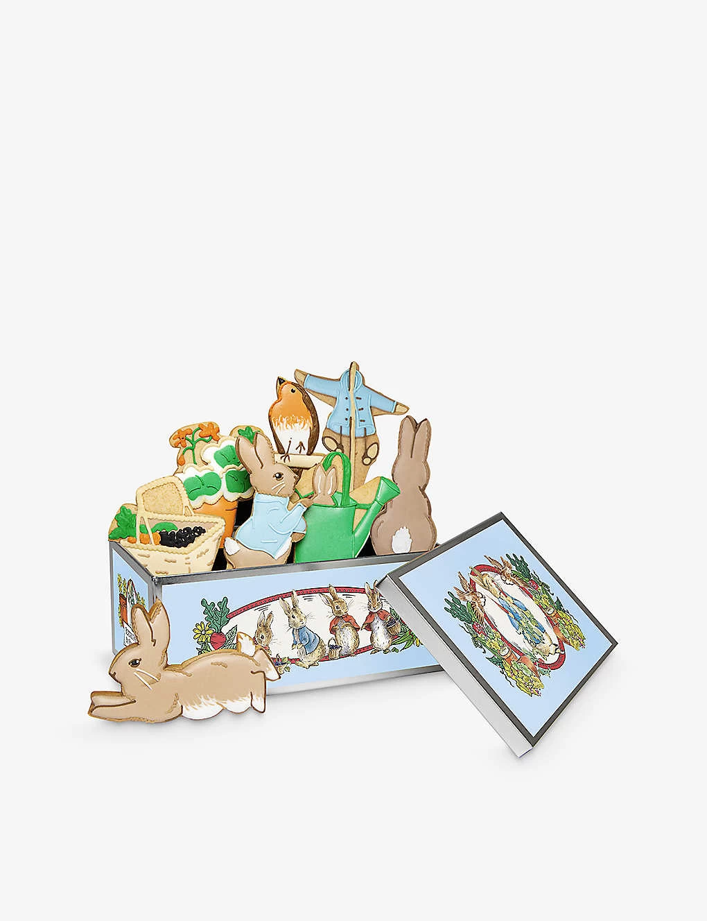 flour (wheat flour, calcium carbonate, iron, niacin and thiamin), caster sugar, butter (milk, salt), golden syrup, egg, baking powder (acid calcium phosphate, sodium hydrogen carbonate) and one of either: vanilla essence, cocoa powder or mixed spice. Icing: icing sugar, royal icing mix (maize starch, egg), food colours* Crunchy sugar: confectioner’s glaze, carnauba wax, food colours* *Wherever possible we use natural and naturally derived colours (beetroot extract, carotene, red cabbage blue, paprika, caramelised sugar) but your biscuit collection may contain up to four of the following E129, E124, E122, E104, E110, E133, E155, E153, E102