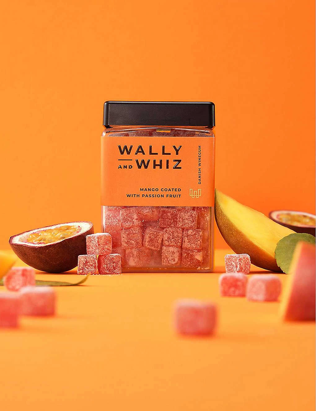 Glucose-fructose syrup, sugar, water, corn starch, acidity regulators (apple citrate, sodium citrate, citric acid), natural flavouring, powdered sugar (sugar, potato starch), black carrot concentrate, coconut oil, passion fruit powder, glazing agent (carnauba wax)