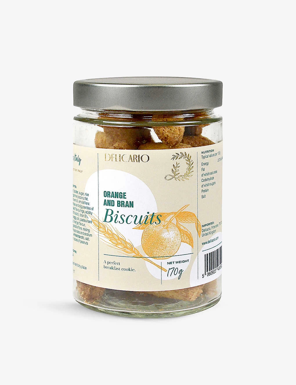 Wheat Flour( Cereals containing gluten ), Butter ( Milk ), Sugar, Egg Yolk( Egg ), Egg( Egg ), Salt, Rice Starch, Margarine (coconut fat, water, sunflower oil, emulsifiers: monoglycerides and diglycerides of fatty acids, salt, flavourings, acidity regulator: citric acid), Bran (Wheat)( Wheat ), Natural Orange Flavour, Glucose, Vegetable fibre, Raising Agents (diphosphates and sodium carbonates, wheatstarch)( Wheat )