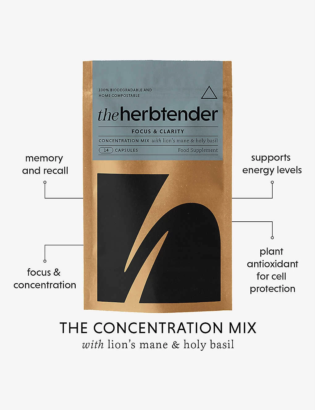 Rosemary leaf, Lemon Balm leaf, Holy Basil leaf*, Rhodiola root, Lion’s mane biomass*, Lion’s mane dual extract*, Gotu cola powdered extract, Ascophyllum nodosum* (Seagreens, providing Iodine), Vegetable Cellulose (capsule)