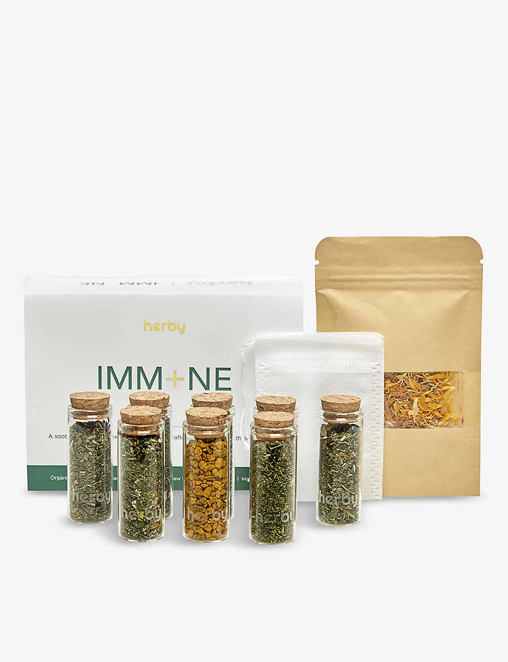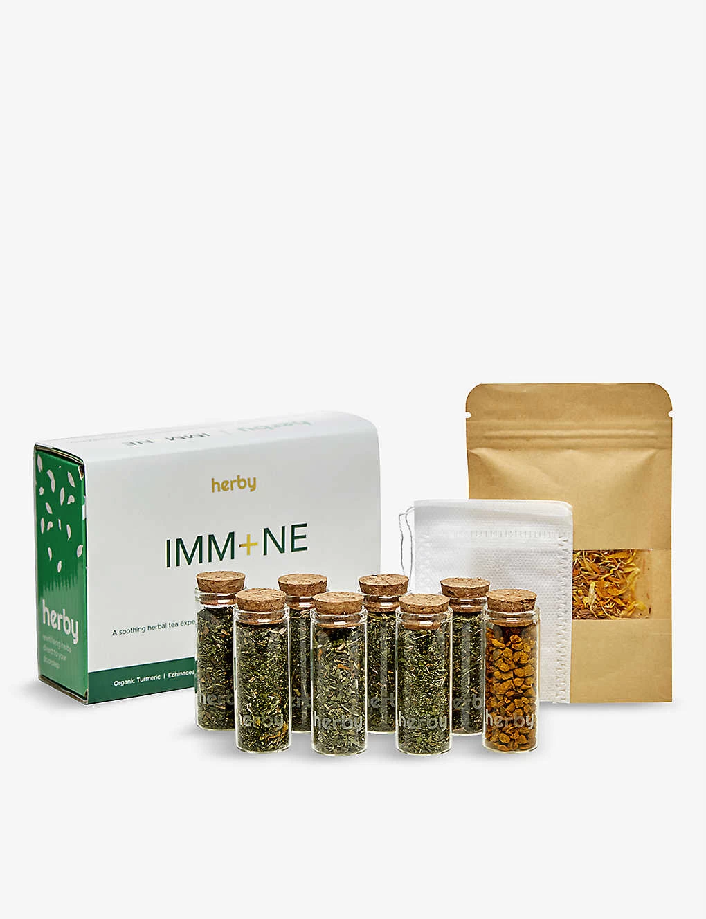 Add one herby bottle, a pinch of herbs from the sachet and a slice or teaspoon of turmeric root to one of the tea bags included in your Herby Box. Add tea bag to your favourite mug.
