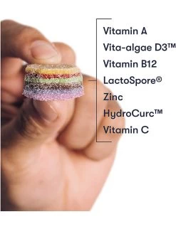 Yeast concentrate providing vitamin D3, Vitamin C and bioflavonoids incorporated in citrus pulp, Lactobacillus bulgaricus providing zinc and coppe, Mineral enhanced yeast providing selenium; capsule shell: vegetable cellulose