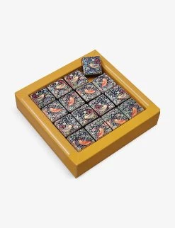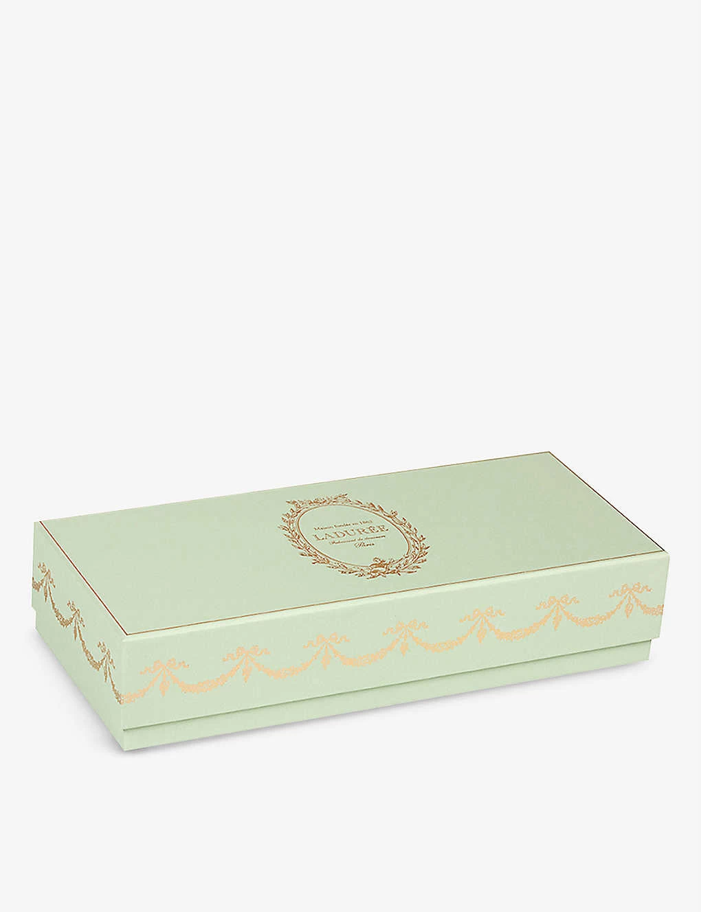 Ingredients: sugar, almond, egg, pistachio (10%), butter, water, sucrose syrup, starch, turmeric concentrate, maltodextrin, egg white powder, spirulina, apple, aroma, acidity regulator: citric acid (E330). May contain almond, milk, tree nuts, fish and gluten