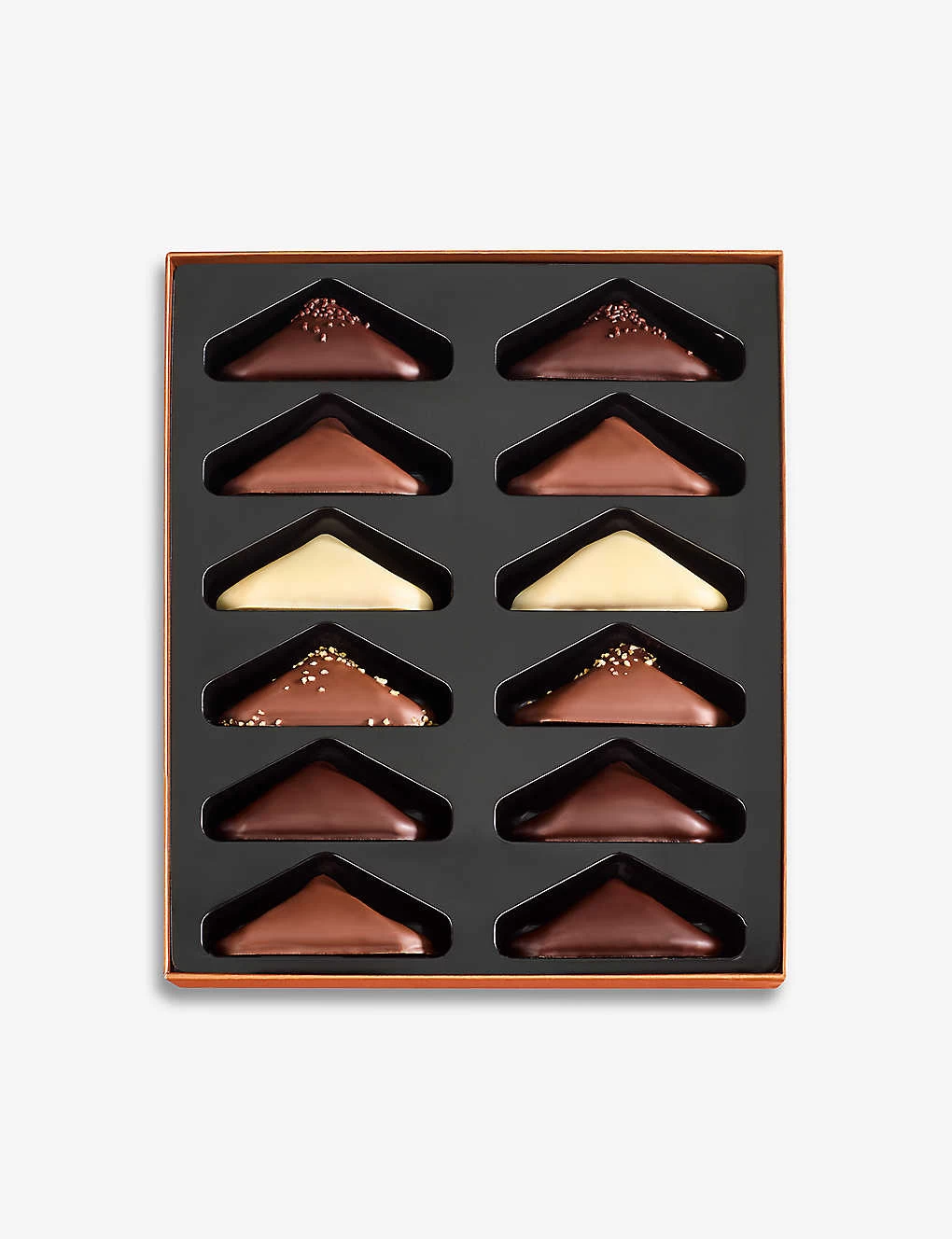 Glucose Syrup, dark chocolate (cocoa mass, sugar, butter oil (milk), cocoa butter, emulsifier: soy lecithin, flavour)(Milk,Soya), emulsifier: soya lecithin, vanilla, flavours, stabiliser: sorbitol of wheat, whole milk(Milk), skimmed milk(Milk), butter oil(Milk), humectants: glycerol of rapeseed, white chocolate (sugar, cocoa butter, whole milk powder, emulsifier: soy lecithin, flavour)(Milk,Soya), milk chocolate (sugar, whole milk powder, cocoa mass, cocoa butter, emulsifier: soy lecithin, flavour)(Milk,Soya), sugar, Hazelnut(Nuts), Acidity Regulator: Citric Acid, Salt, Almond(Nuts), Coffee, Water, Whole Milk Powder(Milk), Cocoa Mass, Cocoa Butter, Cream(Milk), Butter (Milk), mono and diglycerides of fatty acids,