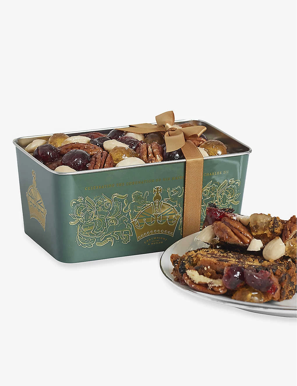 Pecans( Nuts ), ), Salted Butter (MILK, Salt), ( Milk ), Raising Agent (Diphosphates, Sodium Carbonates, Whey Powder (MILK), , Apricot Jam [Glucose Syrup, Sugar, Concentrated Apricot Puree, Gelling Agent: Pectin, Acidity Regulators (Citric Acid, Trisodium Citrate), Flavouring, Preservative: Potassium Sorbate], Liquid Glaze [Glucose Syrup, Water, Sugar, Gelling Agents (Pectin, Carrageenan, Xanthan Gum), Acidity Regulators (Citric Acid, Trisodium Citrate, Tricalcium Phosphate), Preservative: Potassium Sorbate, Firming Agent: Potassium Chloride], , Vegetable Glycerine, Blanched Whole ALMONDS (NUTS), ( Nuts ), Black Treacle (Cane Molasses, Invert Sugar Syrup), , Sultanas (51%) (Sultanas, Sunflower Oil), Glucose Syrup, Margarine (Vegetable Oils (Palm, Rapeseed), Salt, Citric Acid), Whole EGG( Egg ), Whole & Broken Glacé Cherries (7%) (Cherries, Glucose-Fructose Syrup, Sugar, Acidity Regulator: Citric Acid, Preservative: Potassium Sorbate, Colours (Anthocyanin, Erythrosine)),, Sugar, WHEAT Flour (Calcium, Iron, Niacin, Thiamine)( Wheat ), WHEAT Flour (Calcium, Iron, Niacin, Thiamin)).( Wheat ),