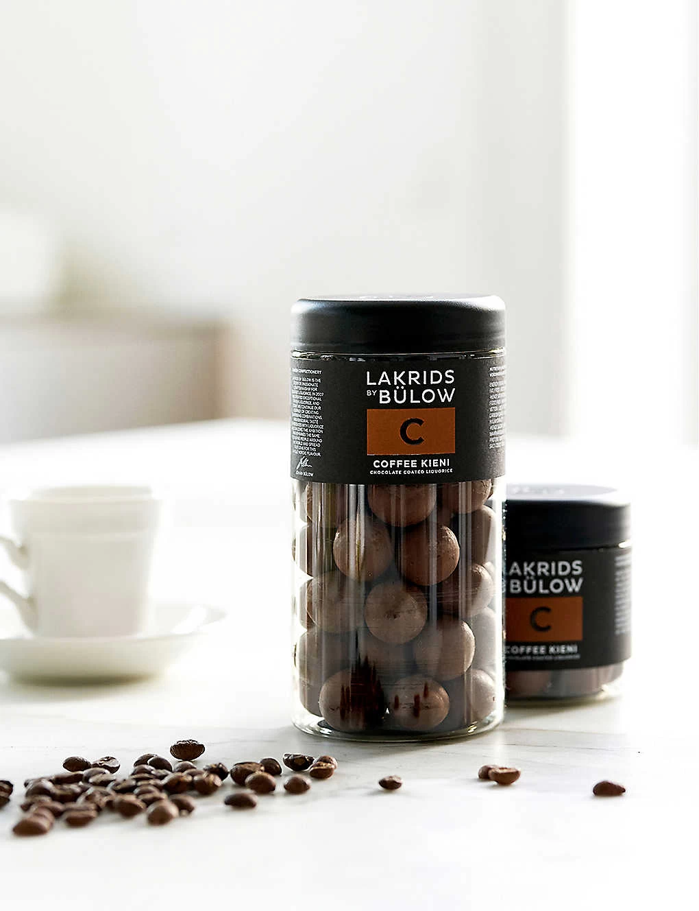 milk chocolate (sugar, cocoa butter, whole milk powder, cocoa mass, emulsifier: soy lecithin, natural vanilla flavour)(Milk and soy ), Rice Flour, Invert Sugar Syrup, Sugar , Treacle, Glucose Syrup, Roasted coffee beans, Raw liquorice, Rapeseed Oil, Salt, Glazing agent: shellac, Anise oil