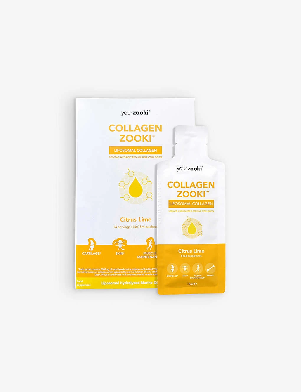 Glycerin, Marine Collagen (fish), water, citrus flavour, Vitamin E, Acidity Regulator: Citric Acid, Sunflower oil containing D Alpha Tocopherol, Phosphatidylcholine, Vitamin C as L-Ascorbic Acid, Lime Extract and Vanilla (Natural Favours)