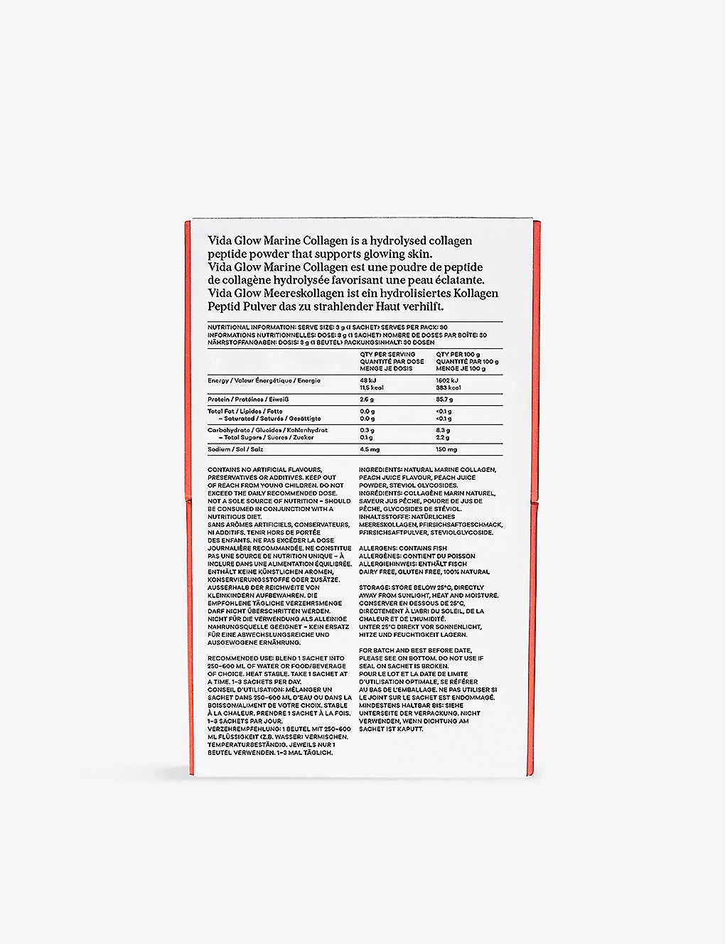 “”Vida Glow Peach Natural Marine Collagen supplement 3g pack of 30