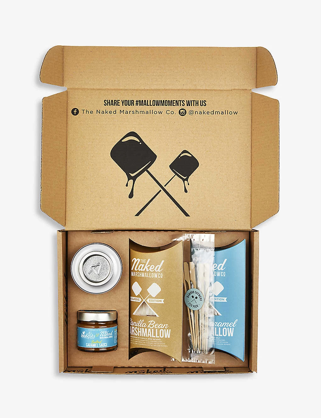 Vanilla Bean: Sugar, Glucose Syrup, Water, Bovine Gelatine ( Sulphites) , Corn Flour, Icing Sugar, Vanilla Extract (1.4%), Salt. , , Salted Caramel: Sugar, Glucose Syrup, Water, Crushed Caramel (3%) (Glucose Syrup, Sugar, Sweetened Condensed Milk , Salted Butter, Salt), Bovine Gelatine ( Sulphites ), Corn Flour, Icing Sugar, Salt, Caramel Natural Flavouring (0.3%). , , Salted Caramel Sauce: Double Cream ( Milk ) (49%), Golden Syrup, Sugar, Sea Salt. , ALLERGEN ADVICE: For allergens, see ingredients in bold . Also may contain nuts, peanuts and soya.