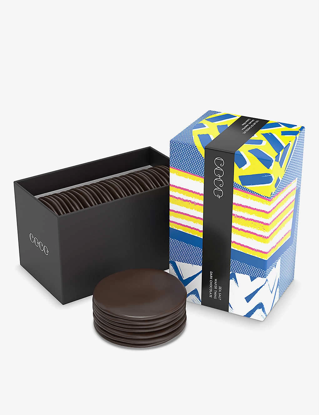 DARK CHOCOLATE 99% (COCOA MASS, CANE SUGAR, COCOA BUTTER, EMULSIFIER: SOYA LECITHIN), SEA SALT 1%. COCOA SOLIDS: 56% MINIMUM. , MAY CONTAIN TRACES OF TREE NUTS, WHEAT AND BARLEY