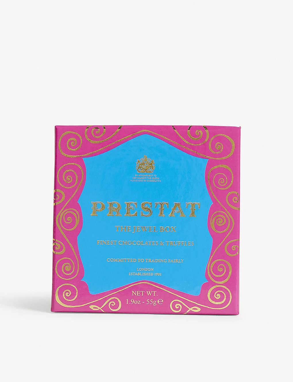 Dark Chocolate (Cocoa Mass, Sugar, Cocoa Butter, Emulsifier: Soya Lecithin; Natural Vanilla Flavouring), Milk Chocolate (Sugar, Whole Milk Powder, Cocoa Butter, Cocoa Mass, Emulsifier: Soya Lecithin; Natural Vanilla Flavouring), Dry Fondant (Sugar, Glucose Syrup), Granulated Sugar, Crystallized Ginger Dices (Ginger, Sugar), Sea Salt Caramel (Whipping Cream (Milk), Glucose Syrup, Sugar, Water, Acidity Regulator: Citric Acid, Sea Salt, Preservative: Sorbic Acid), Praline (Hazelnuts, Sugar, Emulsifier: Soya Lecithin), Plain Caramel (Whipping Cream (Milk), Glucose Syrup, Sugar, Water, Acidity Regulator: Citric Acid, Preservative: Sorbic Acid), White Chocolate (Sugar, Cocoa Butter, Whole Milk Powder, Emulsifier: Soya Lecithin; Natural Vanilla Flavouring ), Light Hazelnut Paste (Sugar, Hazelnuts, Cocoa Butter), Hazelnuts, Pasteurised Whipping Cream (Milk), Krokant (Sugar, Almonds, Dextrose, Cocoa Butter), Glucose Syrup, Passion Fruit Puree, Blackcurrant Puree (Blackcurrant, Sugar), Rice Crisp (Rice Flour, Wheat Flour, Sugar, Whey Powder (Milk), Malt Flour (Barley), Salt, Rapeseed Oil, Emulsifier: Soya Lecithin), Cocoa Butter, Humectant: Sorbitol, Butter (Milk), Passion Fruit Compound (Natural Flavouring, Sugar, Passion Fruit Juice Concentrate, Glucose Syrup, Water, Acidity Regulator: Citric Acid), Pectin (Pectin, Acidity Regulator: Sodium Citrate; Dextrose), Blue Sugar (Sugar, Colored with Spirulina Powder, Thickener: Carnauba Wax), Acidity Regulator: Citric acid , Violet Flavouring, Freezer Dried Coffee, Vanilla Powder