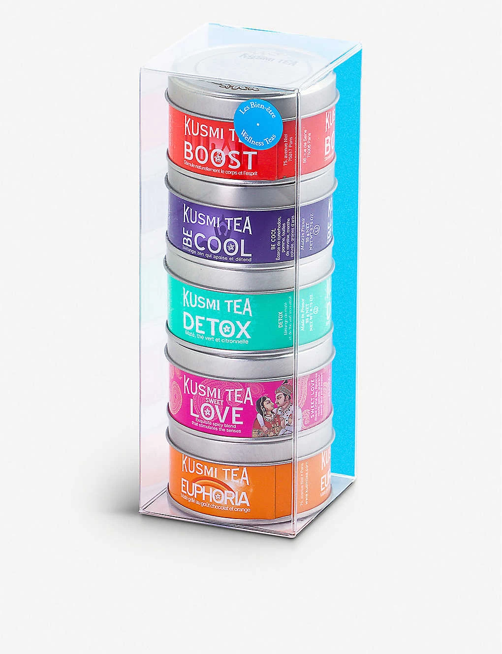 Boost: Maté, green tea , liquorice roost, ginger and cardamom. Spices aroma. Be Cool: rosehip seed, apple, verbena leaves, peppermint, anis seeds ans liquorice roots. Detox: Maté, green tea, lemon scent, lemon grass. Sweet Love: black tea, liquorice roots, spices, quarana seeds, pink pepper and flavors. Euphoria:Roasted maté, chocolate and orange scents.